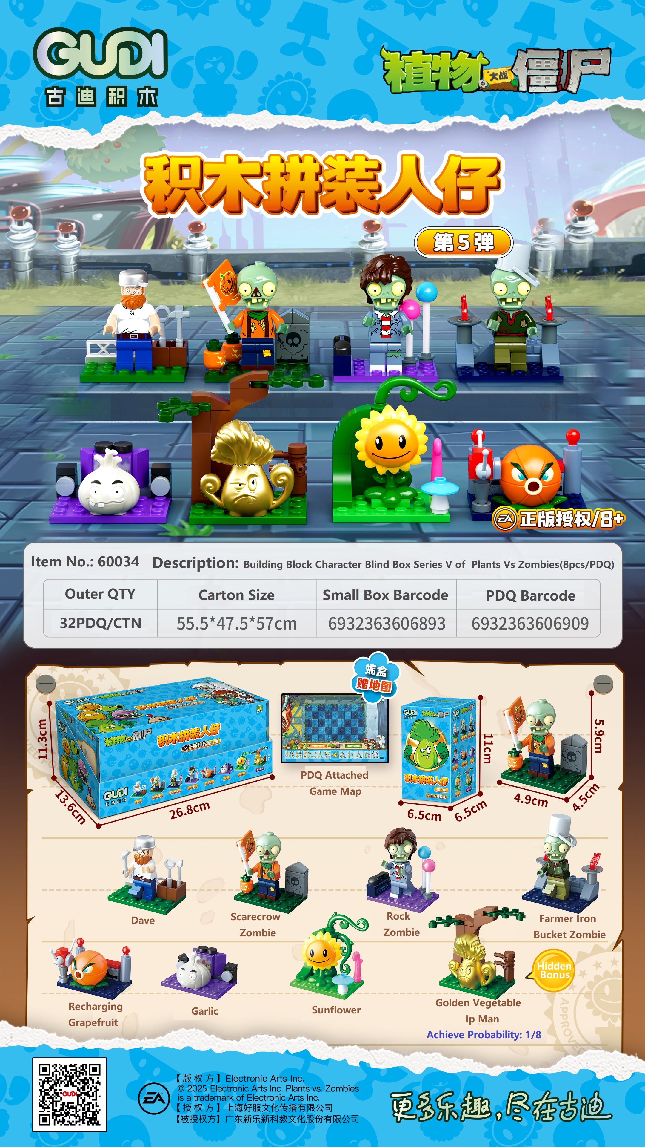 Product Name:Building Block Character Blind Box Series V of Plants Vs Zombies(8pcs/PDQ)